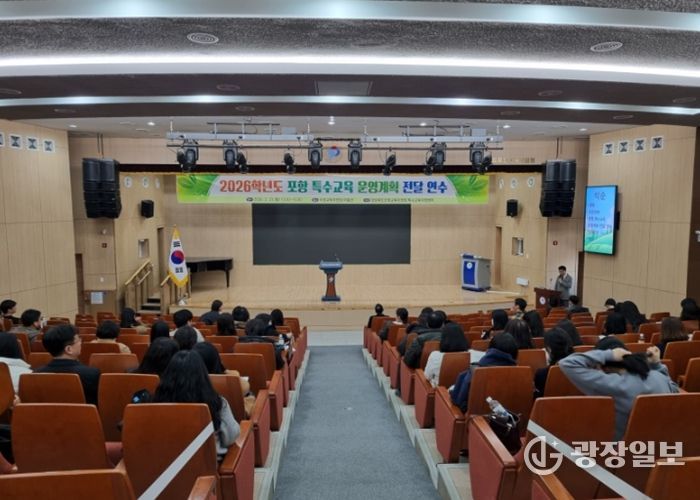 광장일보 주재영 기자 | 포항교육지원청은 2026년 2월 23일 13시 30분, 포항교육지원청 여울관에서 관내 유·초·중·고등학교 특수교육 업무 담당 교원 약 130명을 대상으로 ‘2026학년도 특수교육 운영계획 전달연수’를 실시했다.