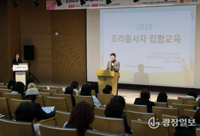 광장일보 주재영 기자 | 인천시 중구는 지난 24일 영종복합문화센터 대강당에서 ‘2026년도 어린이·사회복지급식관리지원센터 조리종사자 집합교육’을 진행했다.