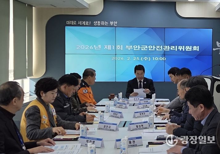 광장일보 주재영 기자 | 부안군은 25일 군청 3층 중회의실에서 2026년 제1회 부안군 안전관리위원회를 개최했다.