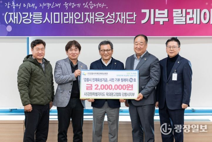 이번 기탁은 수년째 든든한 후원자 역할을 해온 신한은행 강원영동본부의 정성과 지역 인재 양성에 새롭게 힘을 보태기로 한 옥외광고협회 강릉시지부의 마음이 더해져 그 의미를 더했다.