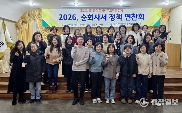 광장일보 주재영 기자 | 전라남도교육청은 23~24일 신안비치호텔에서 ‘2026. 순회사서 정책 연찬회’를 열고, 학교도서관 중심 독서인문교육 활성화 방안을 논의했다.