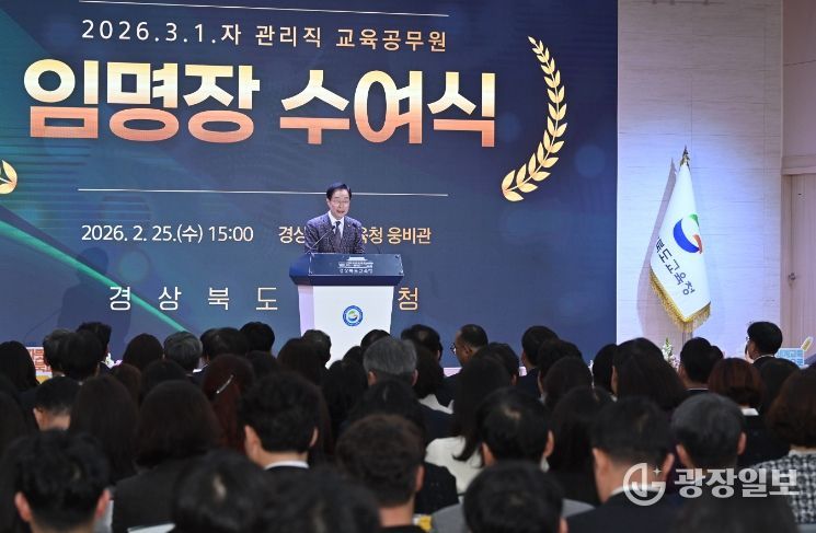 광장일보 주재영 기자 | 경북교육청은 25일 본청 웅비관에서 2026년 3월 1일 자로 신규 임용되는 유․초․중등 관리직 교육공무원에게 임명장을 수여했다고 밝혔다.