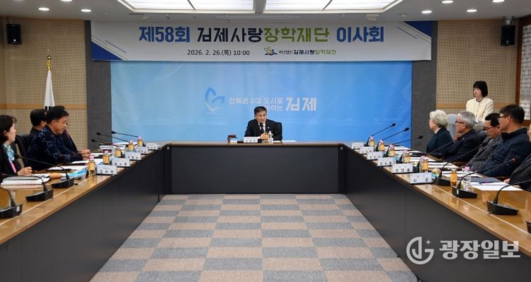 광장일보 주재영 기자 | 김제시는 재단법인 김제사랑장학재단(이사장 정성주)이 26일 시청 2층 상황실에서 임원 12명이 참석한 가운데 제58회 정기이사회를 개최했다고 밝혔다.