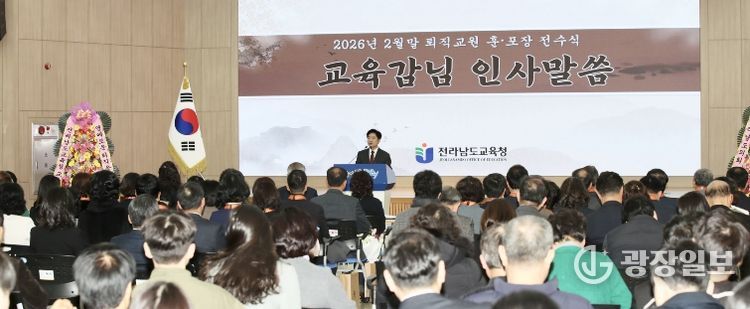 광장일보 주재영 기자 | 전라남도교육청은 2월 27일 청사 대회의실에서 2026년 2월말 퇴직교원 훈·포장 전수식을 개최했다.
