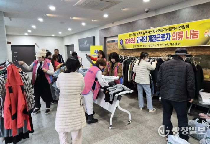 광장일보 주재영 기자 | 한국생활개선밀양시연합회(회장 안화영)는 27일 밀양시농업기술센터 농업인교육관에서 2024년부터 3년째 이어오고 있는 외국인 계절 근로자를 위한 ‘사랑의 의류 나눔 행사’를 개최했다.