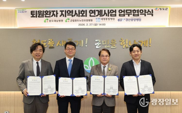 광장일보 주재영 기자 | 청도군은 27일 오후 2시 군수실에서 관내·인근 의료기관과 '통합돌봄 퇴원환자 지역사회 연계사업' 추진을 위한 업무협약을 체결했다.