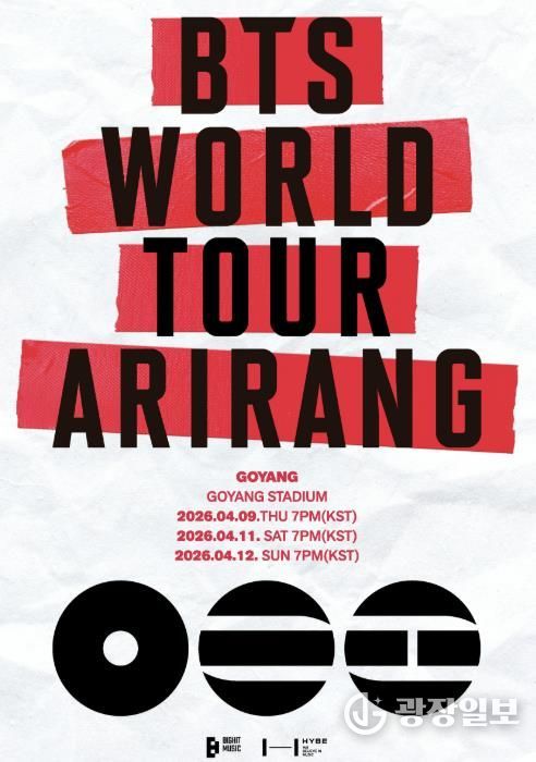 광장일보 주재영 기자 | 전 세계의 이목이 집중된 방탄소년단의 월드투어 ‘BTS WORLD TOUR ‘ARIRANG’’가 오는 4월 경기도 고양시에서 그 화려한 서막을 알린다.