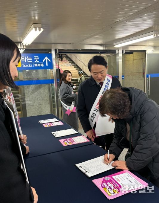 이번 행사는 지하철을 이용하는 시민들에게‘해사법원 유치 서명운동’에 적극 동참해 줄 것을 호소하는 형태로 진행됐다.