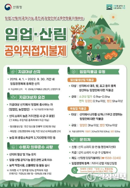 광장일보 주재영 기자 | 광양시는 2026년도 임업·산림 공익직접지불금 신청을 3월 4일부터 4월 30일까지 받는다고 밝혔다.