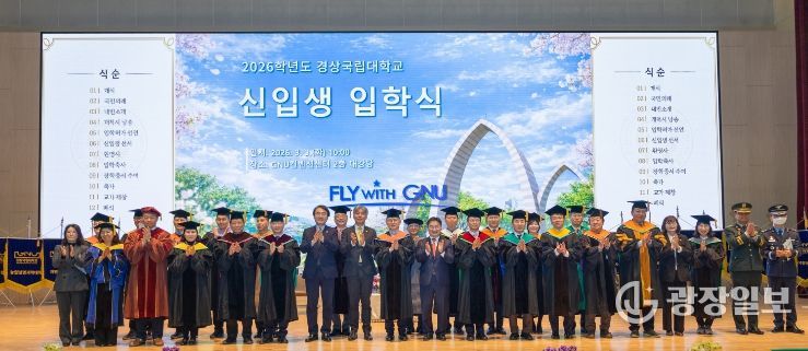 광장일보 주재영 기자 | 경상국립대학교는 3월 3일 오전 10시 가좌캠퍼스 GNU 컨벤션센터 2층 대강당에서 2026학년도 입학식을 개최했다.