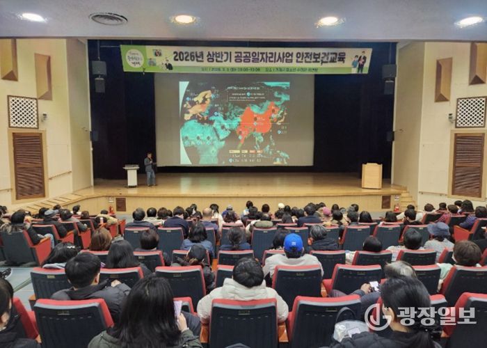 광장일보 주재영 기자 | 거제시는 3월 3일 거제시 청소년수련관에서 2026년 상반기 공공근로 및 지역공동체일자리사업 참여자 300여 명을 대상으로 산업안전보건교육을 실시했다.