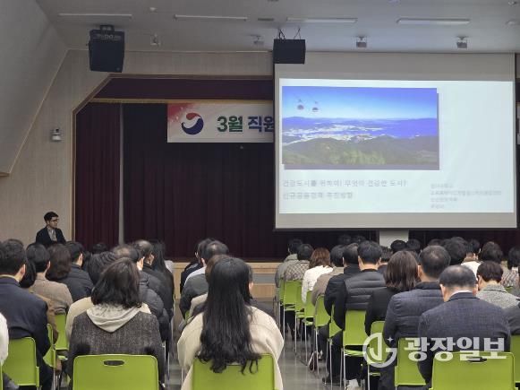 광장일보 주재영 기자 | 통영시는 지난 3일 시청 강당에서 열린 직원 정례조회에서 전 직원을 대상으로 건강도시 교육을 실시했다.