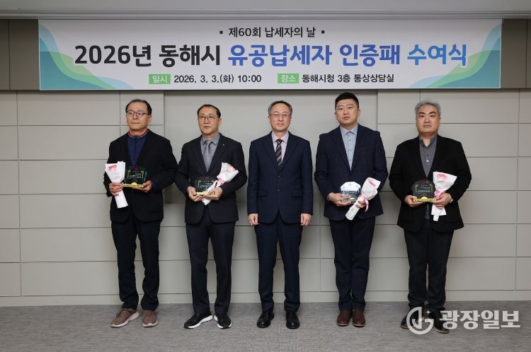 광장일보 이현나 기자 | 동해시는 3월 3일 '제60회 납세자의 날'을 맞아 시청 통상상담실에서 유공납세자 인증패 수여식을 열고 성실납세자들에게 감사의 뜻을 전했다.