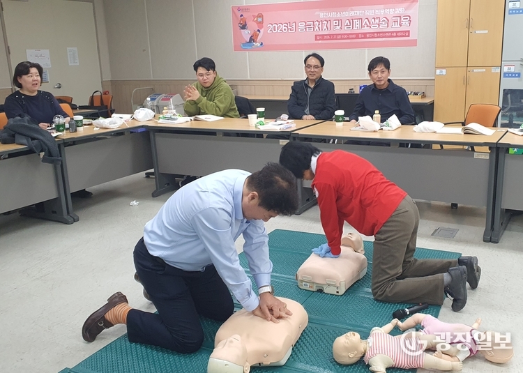 광장일보= 주재영 기자 | 용인시청소년미래재단(대표이사 김영우)는 지난 27일 용인시청소년수련관에서 직원 28명을 대상으로 ‘응급처치 일반과정 교육’을 실시했다.