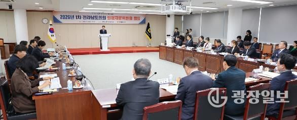 광장일보 주재영 기자 | 전라남도의회는 4일 도의회 초의실에서 제5기 의정자문위원회 2026년 제1차 회의를 개최하고, 전남광주행정통합특별법 통과에 따른 지역 균형발전 및 의회의 역할을 주제로 논의를 진행했다.