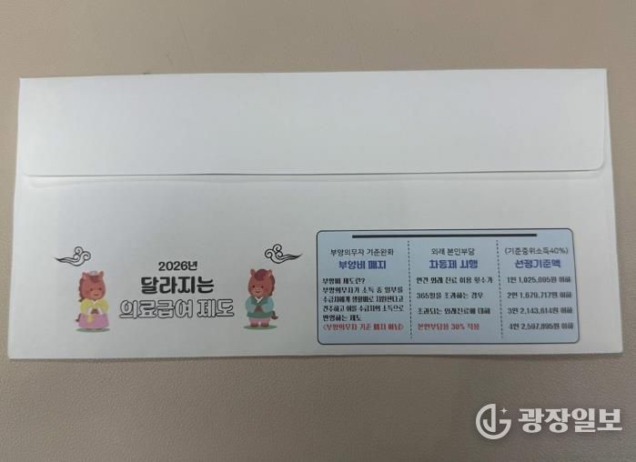 광장일보 주재영 기자 | 의정부시는 2026년부터 달라지는 의료급여 제도의 핵심 내용을 시민들에게 신속하게 알리기 위해 주요 변경 사항을 담은 맞춤형 우편봉투를 제작했다고 5일 밝혔다.