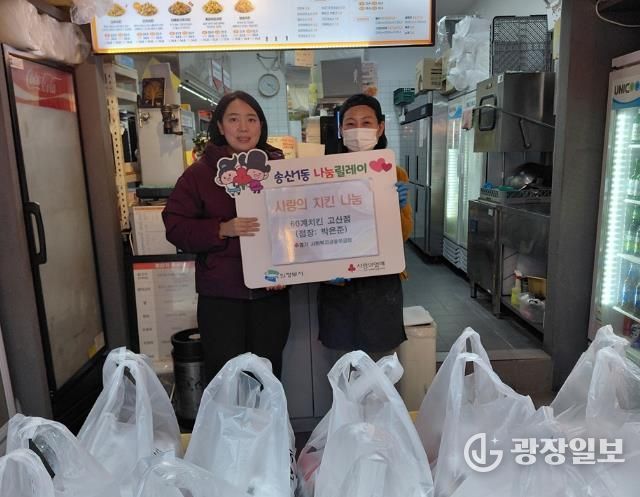 광장일보 주재영 기자 | 의정부시 송산1동주민센터는 2월 27일 60계치킨 고산점이 관내 저소득 한부모가정을 위해 치킨 10마리를 후원하며 따뜻한 나눔을 실천했다고 밝혔다.