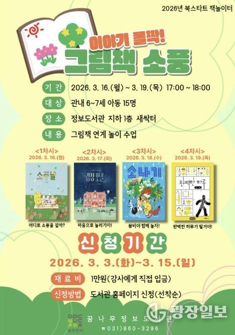 광장일보 주재영 기자 | 동두천시 꿈나무정보도서관은 3월 16일부터 3월 19일까지 2026년 북스타트 책놀이터 ‘이야기 폴짝! 그림책 소풍’을 운영한다고 밝혔다.