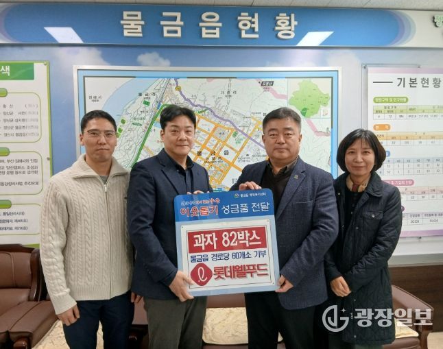 광장일보 주재영 기자 | 롯데웰푸드 주식회사(대표 최명완)는 지난 3월 5일 물금읍 행정복지센터를 방문하여 지역 내 경로당(60개소)에 전달할 과자 82박스를 기탁했다.