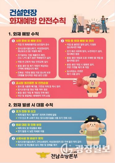 광장일보 주재영 기자 | 나주소방서는 봄철 건조한 날씨로 인해 건설현장 화재 위험이 높아짐에 따라 관내 공사장 관계자를 대상으로 안전수칙 준수를 위한 현장지도와 홍보활동을 추진한다고 밝혔다.