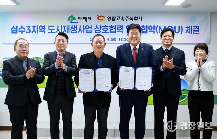 광장일보 이현나 기자 | 태백시는 3월 6일 오후 3시 30분 시청 소회의실에서 영암고속 주식회사와 ‘삼수3지역 도시재생사업 추진을 위한 업무협약’을 체결했다고 밝혔다.