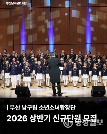 광장일보 주재영 기자 | (재)부산남구문화재단은 남구립 소년소녀합창단의 신규 합창단원을 2026년 3월 3일부터 3월 17일까지 모집한다고 밝혔다.