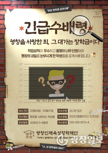광장일보 이현나 기자 | (재)평창인재육성장학재단이 지역 출신 대학생들의 등록금 전액과 생활비를 지원하는 전폭적인 지원책을 마련해‘2026년도 제1차 장학생 선발’에 나선다.