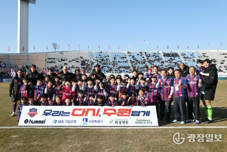 광장일보 박균현 기자 | 수원특례시의회는 7일 수원종합운동장 주경기장에서 열린 '2026 시즌 K리그2 수원FC 홈 개막전'을 찾아 선수단을 격려하고 시민들과 함께 시즌의 힘찬 출발을 응원했다.