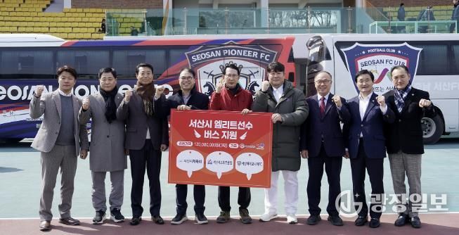 전달된 대형버스 3대는 총 1억 2천만 원 상당으로, 서산FC U15·U18, 서산파이오니아FC 선수들의 이동 차량으로 사용될 예정이다.
