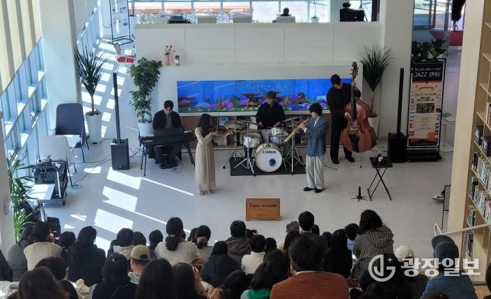 광장일보 나병석 기자 | 오산시는 지난 7일 청학도서관 1층 커뮤니티스테어에서 열린 재개관 기념 공연 ‘2026 음악이 흐르는 도서관 콘서트 – 재즈&북(Book)의 향연: JAZZ VIBE’가 시민들의 큰 호응 속에 성황리에 마무리됐다고 밝혔다.