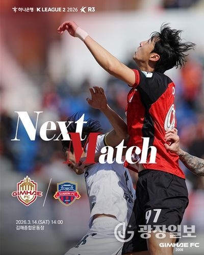 광장일보 주재영 기자 | 김해FC가 오는 14일 오후 2시 김해종합운동장에서 수원FC(‘수원’)를 상대로 ‘하나은행 K리그2 2026’ 3라운드 홈 경기를 치른다.