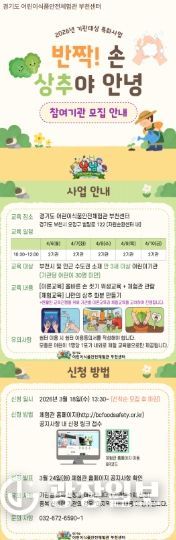 교육 모집 대상은 부천시 및 인근 수도권 소재 어린이 기관으로 3월 18일부터 체험관 홈페이지를 통해 선착순으로 참여기관을 모집한다.