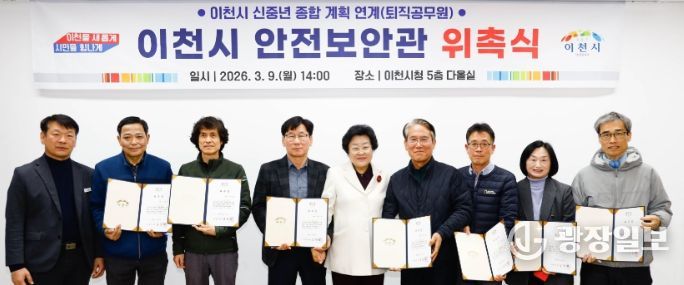 광장일보 주재영 기자 | 이천시는 지난 9일 ‘이천시 안전보안관 위촉식’을 열고 신규 안전보안관 7명에게 위촉장을 수여했다.