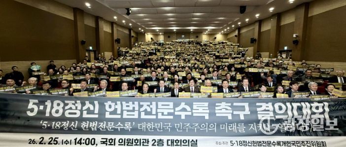 한편 광주시는 앞서 지난 2월 25일 국회의원회관 대회의실에서 전국 시민사회단체, 5·18단체, 전라남도 등이 참여한 ‘5·18정신헌법전문수록개헌국민추진위원회’ 주최 ‘5·18정신 헌법전문 수록 개헌 촉구 국민결의대회’를 개최하는 등 5·18 정신의 헌법 전문 수록을 위한 사회적 공감대 확산에 힘쓰고 있다.