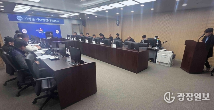 가평군= 주재영 기자 | 가평군은 9일 군청 재난안전상황실에서 ‘하천·계곡 구역 내 불법 점용시설 전수 재조사’ 관련 읍면장 회의를 열고 전담 태스크포스(TF)를 구성해 본격적인 정비에 착수하기로 했다. 회의에는 김미성 부군수와 건설도시국장, 건설과장, 6개 읍면장 등이 참석해 특별정비 추진계획과 실행 방안을 논의했다.
