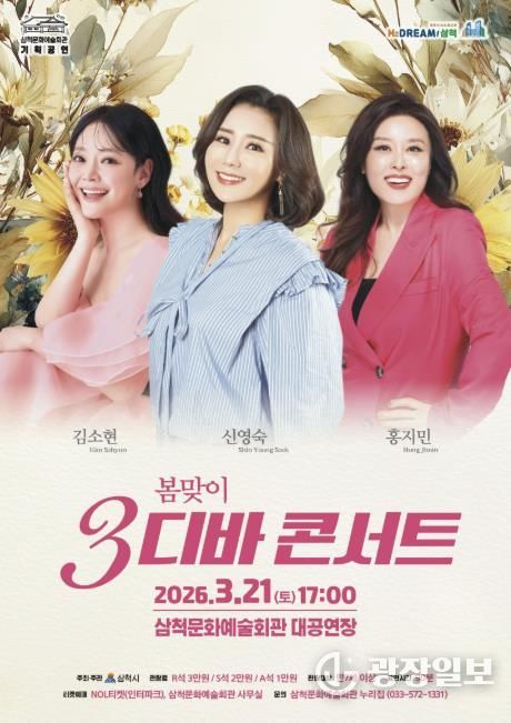 광장일보 이현나 기자 | 삼척시는 봄을 맞아 시민들에게 문화 향유 기회를 제공하기 위해 오는 3월 21일 오후 5시 삼척문화예술회관 대공연장에서 ‘봄맞이 3디바 콘서트’ 초청공연을 개최한다.