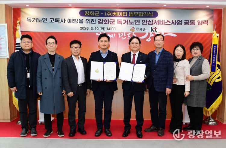 광장일보 주재영 기자 | 강화군은 지난 10일 KT와 독거노인 안심서비스 사업 추진을 위한 업무협약을 체결했다.