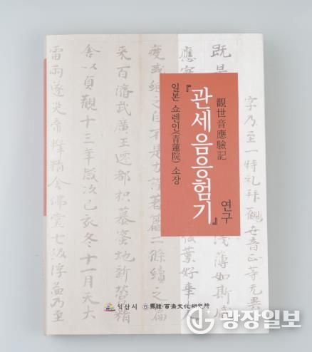 익산시와 원광대학교 마한백제문화연구소는 일본 교토 쇼렌인(청련원, 靑蓮院)에 소장된 고문헌 '관세음응험기(觀世音應驗記)' 번역 연구서를 발간했다고 12일 밝혔다.