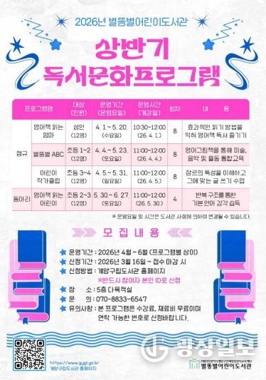광장일보 주재영 기자 | (재)인천광역시계양구인재양성교육재단 별똥별어린이도서관은 지역주민을 대상으로 2026년 상반기 독서문화프로그램을 운영한다.