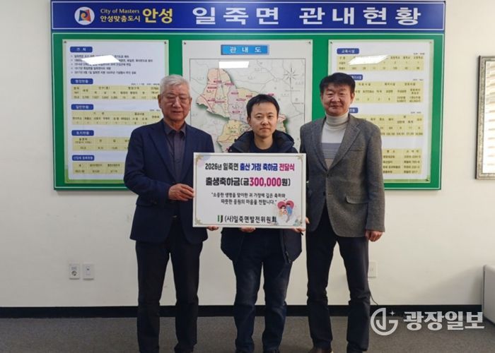 앞서 (사)일죽면발전위원회는 지역 공동체 활성화와 출생 장려를 위해 2026년 3월부터 일죽면에서 태어난 출생아 가정에 30만 원 상당의 축하금을 전달하기로 결정한 바 있다.