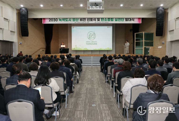 광장일보 주재영 기자 | 양산시는 2026. 3. 12. 양산비즈니스센터 컨벤션홀에서 '2030 녹색도시 양산' 비전 선포식과 탄소중립 실천단 발대식을 개최하고, 지속가능한 녹색도시로의 본격적인 전환을 공식 선언했다.