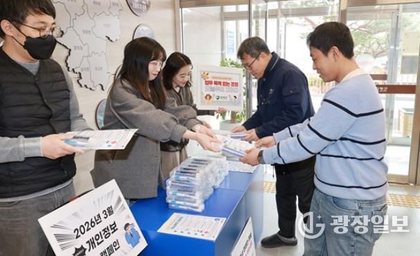 광장일보 주재영 기자 | 전남 함평군은 “지난 11일 군청 로비에서 전 직원을 대상으로 개인정보 보호의 중요성을 알리는 ‘2026년 개인정보 보호 캠페인’을 실시했다”고 12일 밝혔다.