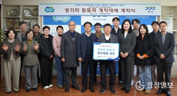 광장일보 박균현 기자 | 경기도농업기술원은 경기도 쌀 가공업체 4곳과 김포특수가공미영농조합이 ‘경기미 원료곡 200톤 계약재배 계약’을 체결했다고 12일 밝혔다. 계약식은 농업기술원 본관 상황실에서 개최됐다.