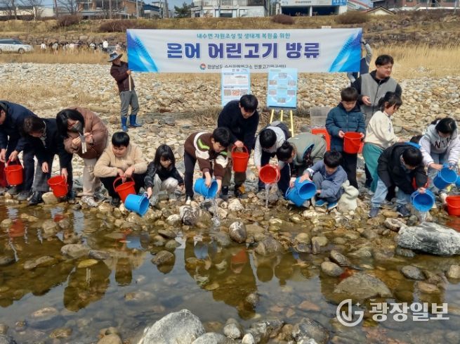 광장일보 주재영 기자 | 경상남도 수산자원연구소 민물고기연구센터는 3월 12일 산청군 경호강에서 내수면 생태계 자원 회복과 어업인 소득 증대를 위해 은어 어린고기 6만 마리를 방류했다고 밝혔다.