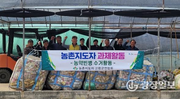 ‘2026 농촌지도자 과제활동’의 일환으로 실시한 이번 수거활동은 8개 읍면회에서 연중 모은 것으로 1톤 트럭 5대 분량의 농약빈병을 수거했다.