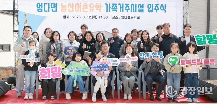 광장일보 주재영 기자 | 전남 함평군은 “지난 12일 엄다면 엄다초등학교에서 ‘농산어촌유학 가족거주시설 입주식’을 열고 입주 가정의 새로운 시작을 축하했다”고 13일 밝혔다.