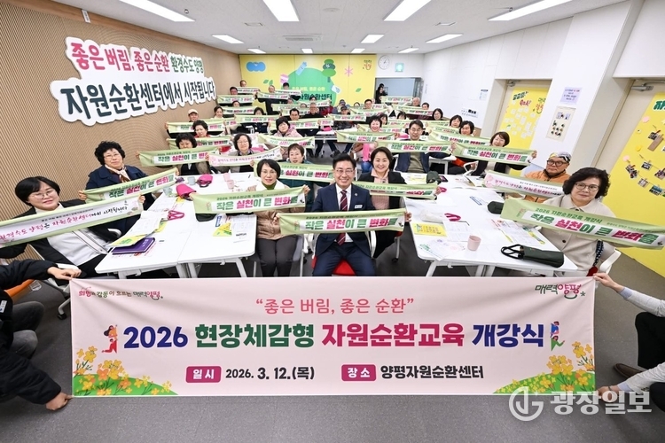 양평군= 주재영 기자 | 양평군이 자원순환 실천 문화 확산을 목표로 ‘2026 현장 체감형 자원순환교육’의 개강식을 양평자원순환센터에서 개최했다.