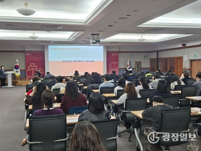 정윤식 회계과장은 “계약업무는 관련 법령과 절차가 복잡해 신규 직원들이 업무를 수행하는 데 어려움을 겪는 경우가 많다.”라며, “이번 교육을 통해 지원들이 계약업무의 기본 원칙과 실무 절차를 정확히 이해하고 공정하고 투명한 계약행정을 추진하는 데 도움이 되길 기대한다.”라고 밝혔다.