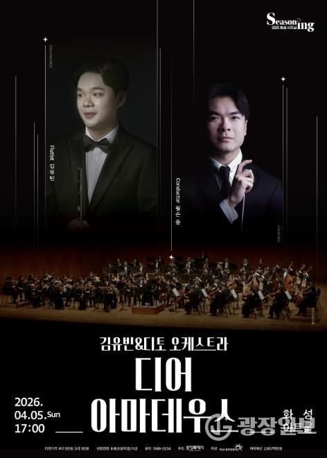 광장일보 나병석 기자 | (재)화성시문화관광재단은 오는 4월 5일 오후 5시, 화성아트홀에서 김유빈&디토 오케스트라 디어 아마데우스 공연을 개최한다.
