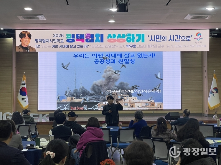평택시= 주재영 기자 | 평택시는 지난 13일 오후 7시 시청 대회의실에서 60여 명의 시민이 참석한 가운데 ‘2026 평택협치시민학교’의 개강식과 첫 강의를 진행했다.